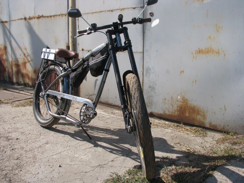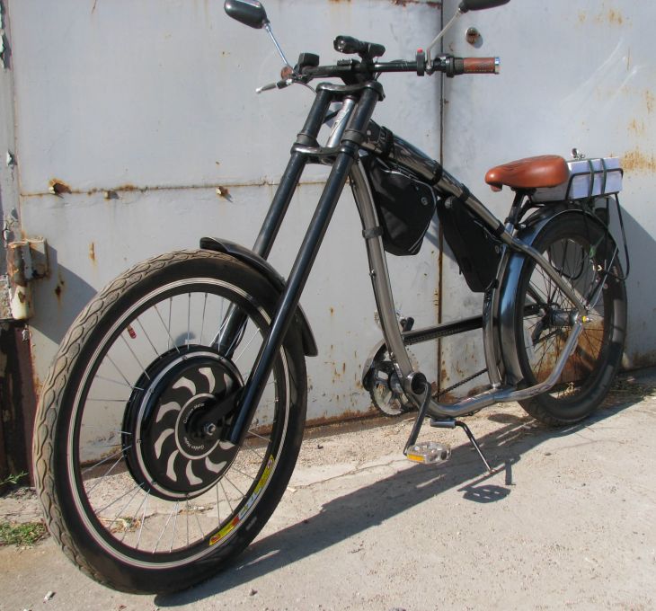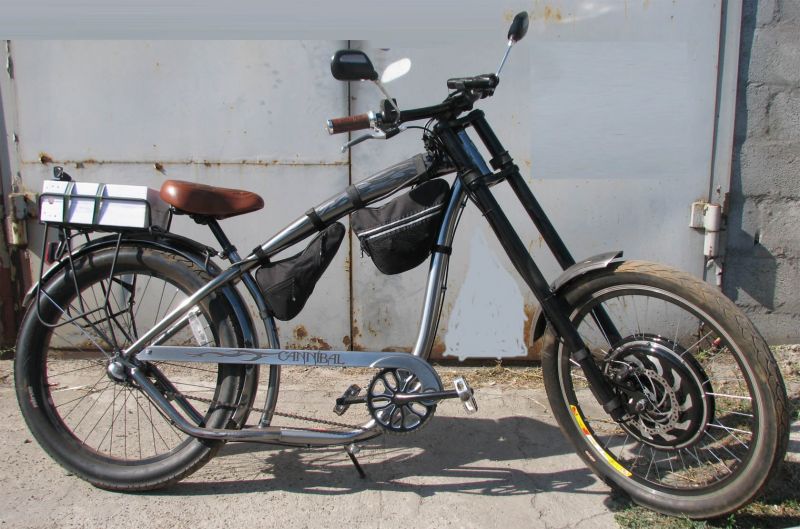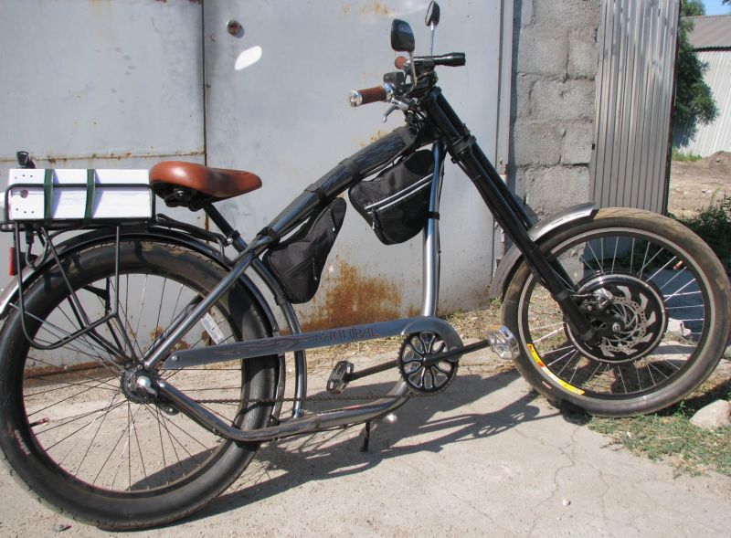 Кастомный мини чопер собран на базе рамы велосипеда Comanche "Lago".Привод задний: 500W; 60V; 12A.Оборудован прыжковой гидравлической вилкой ...