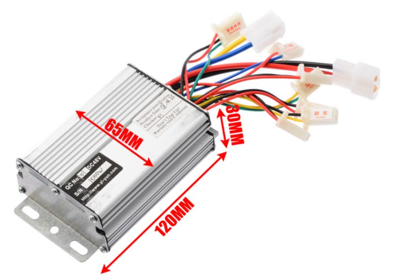 Напряжение: 48v Максимальная рабочая мощность: 1000W Регулировка ручкой "газа" 1-4 V Размер 120*70*40 мм