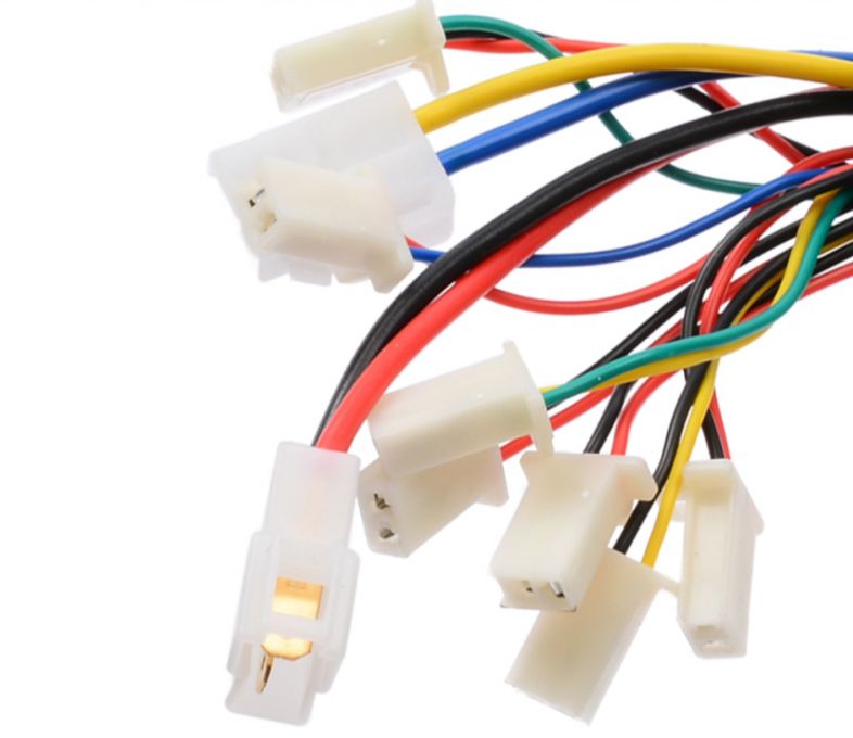 8 групп проводов. Схема подключения на картинке, разъемы с наклейками