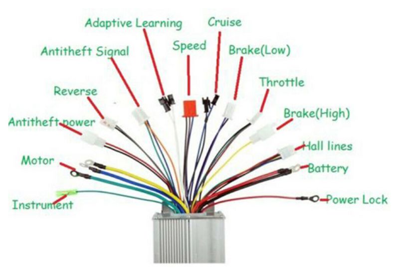 Контроллер « AL 48 / 500 (31A) угол: 60/120 град» предназначен для регулирования скорости безредукторных, мотор колёс, имеющих номинальное напряжение 48 вольт и в кратковременных режимах реализует мощность мотор колеса до 1000 ватт. Рекомендуется для использования с мотор колёсами 48v /500 w.