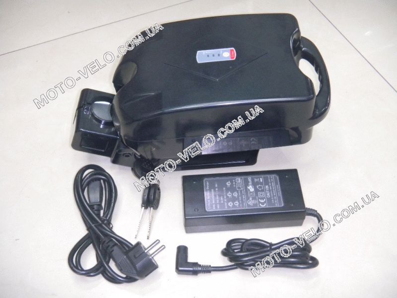 Универсальный литиево-полимерный аккумулятор 24 В /10 Ач. Предназначен для установки на любые электровелосипеды и электроскутера с мотор-колесом мощностью до 1 киловатта включительно и контроллером на 24 вольт. В комплекте: автоматическое зарядное устройство 24v, кронштейн для крепления на подседельный штырь велосипеда. Устанавливается на подседелный штырь, снабжен запирающимся замком. Батарея расположена в съемном платиковом корпусе. В подседельном креплении есть место под контроллер.