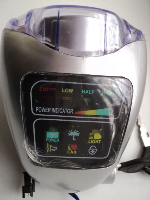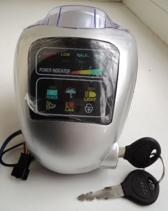 Фара-замок зажигания, со встроенным замком и двумя ключами. Фара также имеет индикаторы зарядка батареи, включения фары.