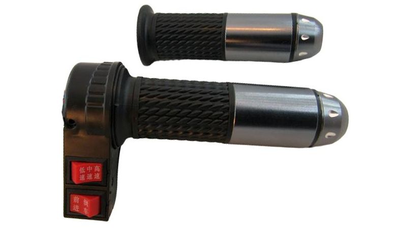 Комплект ручка газа с переключателем на три положения и два положения. Диаметр для крепления - 22мм. Длина кабеля - 44 см. Материал - прорезиненный пластик и металл. В работу приводит поворотное движение правой рукой вниз. Комплект удобен в использовании и долговечен.