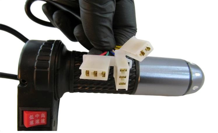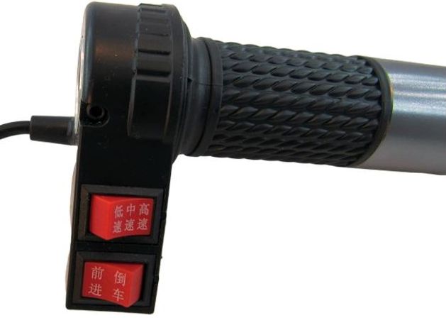Ручка акселератора (скорости) со светодиодным индикатором уровня зарядки аккумулятора на 48 вольт и кнопкой круиз-контроля предназначена для переоборудования велосипеда  в электровелосипед с помощью мотор колеса или внешнего электродвигателя и контроллера, имеющего соответствующий разъём для подключения ручки газа. Также используется в  электросамокатах, электроскутерах, электроквадроциклах, электромотоциклах и другом транспорте с электроприводом.