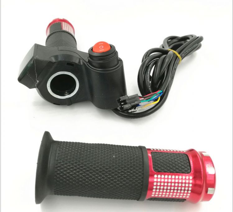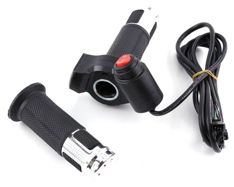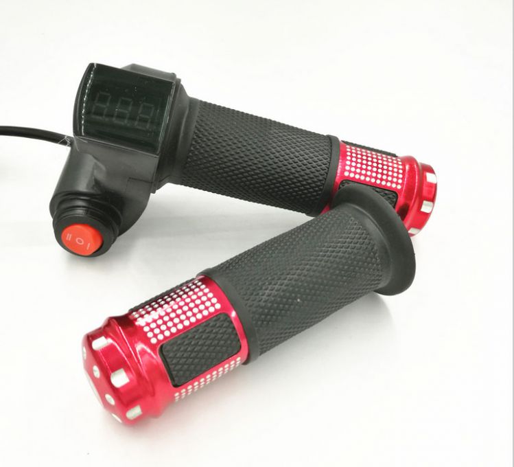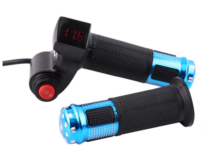 Ручка газа элит (пара) 12V-72V со светодиодным индикатором и 3-позиционным переключателем, из алюминиевого сплава, фрезерованная. Универсальная ручка (дроссельная заслонка) для электрических велосипедов, скутеров, трехколесных электровелосипедов, и других электрических транспортных средств.