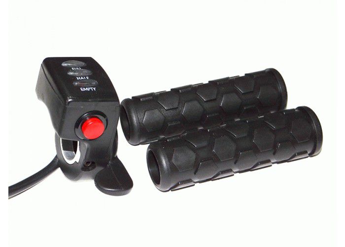 Ручка акселератора (скорости) со светодиодным индикатором уровня зарядки аккумулятора на 48 вольт и кнопкой круиз-контроля предназначена для переоборудования велосипеда в электровелосипед с помощью мотор колеса или внешнего электродвигателя и контроллера, имеющего соответствующий разъём для подключения ручки газа. Также используется в электросамокатах, электроскутерах, электроквадроциклах, электромотоциклах и другом транспорте с электроприводом.