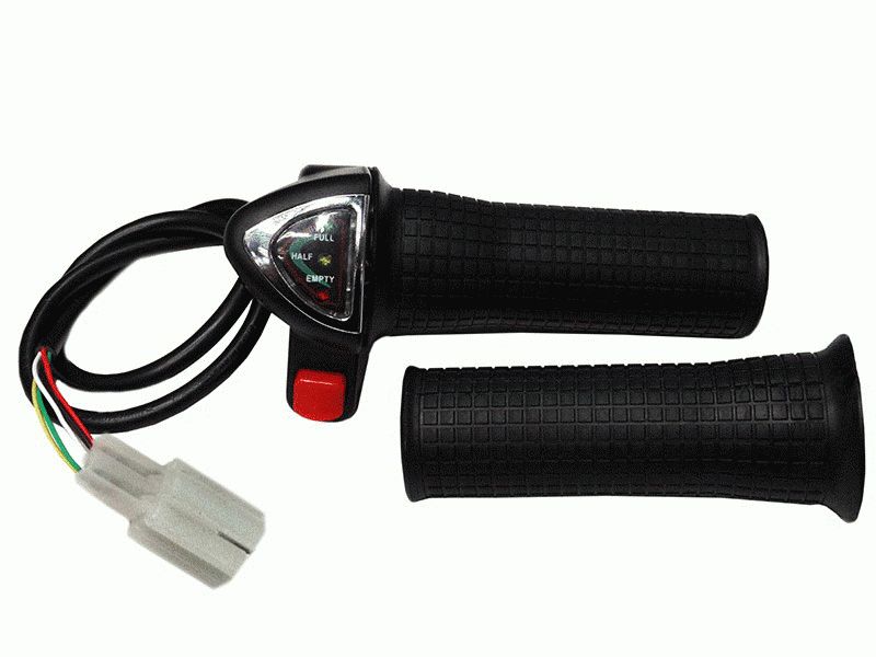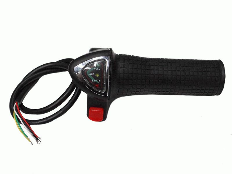 Новая модель, с оригинальным дизайном, имеющая всё необходимое в одном блоке: акселератор, светодиодный индикатор уровня зарядки аккумулятора и кнопку. Вращаемая часть акселератора расположена по части длины рукоятки – это классическая модель ручки газа. Ручка выполнена из качественного ударопрочного пластика на металлическом каркасе.