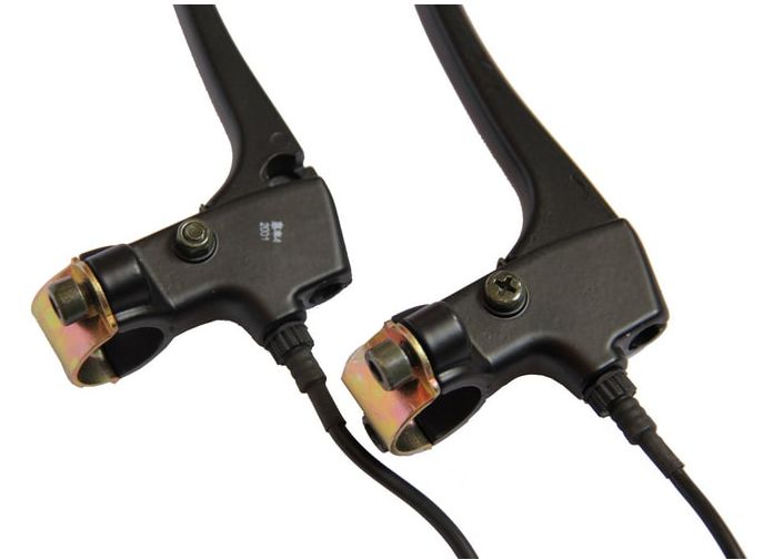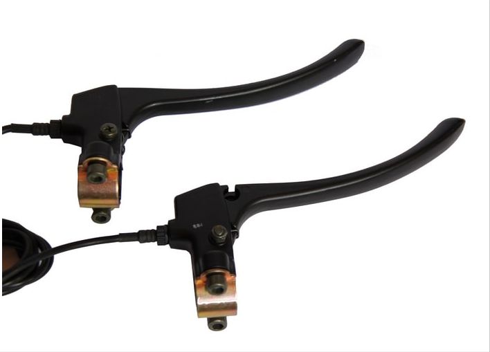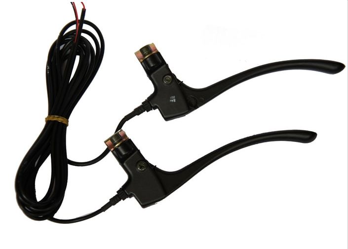 Ручки тормоза с датчиками отключения мотор колеса или электродвигателя, предназначены для мгновенного отключения подачи питания на электропривод при торможении. Ручки тормоза с датчиками отключения, используются на электровелосипедах, электроскутерах, электросамокатах, электроквадроциклах, электромотоциклах и другом лёгком электротранспорте, оборудованном рулём велосипедного типа.