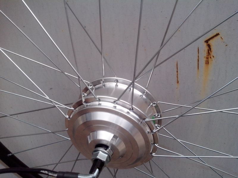 Не давно на встрече с электро велосипедистов в г Днепр, завязалась оживленная дискуссия по поводу, правильно спицевать колеса. Сразу скажу обнаружилось два координатно разных подхода, одни говорили спица должна быть очень прочная до 4мм в диаметре, чтобы колесо могло выдержать любые нагрузки и очень мощные электромоторы. Другие напротив ратовали за применение обычной велосипедной спицы, так как по прочности якобы более чем достаточно. Рассудить правоту в этом споре могла лишь дорога со всеми её колдобинами и ямами. Но вот вопрос нет-ли между этими двумя не применимыми подходами разумного компромисса? Наверное есть. Что хорошего в велосипедной спице? Это её малый диаметр и мелкий шаг резьбы позволяющий вполне адекватно натянуть спицу и предать колесу его желаемую ровную форму. А не достатком, во всяком случае при сборке эл колёс на стандартные моторы, это не соответствие диаметра отверстии во фланцах мотор колёс, которые заране увеличены под усиленную спицу диаметром 3,5-4 мм. И спица 2 мм в этом отверстии как карандаш в стакане, да и ещё и её кованое окончание оставляет желать лучшего. К плюсам применения обычной тонкой спицы также можно отнести применение их при сборке колес на стандартный, а иногда и двойной пистонированный обод, к чему часто прибегают велосипедисты пересаживаясь на электро тягу. Компромиссное решение было найдено как обычно случайно, при детальном рассмотрении европейского вело секондхенда. В Европе уже давно практикуют сбору на тянутую усиленную спицу с различным диаметром в сечении и плюс с применением хороших нержавеющих или легированных сталей. Но наш пытливый славянский ум как всегда нашёл ассиметричный и более дешёвый вариант. Информация: спица 260 гр/ комплект. Работа 250 гр.