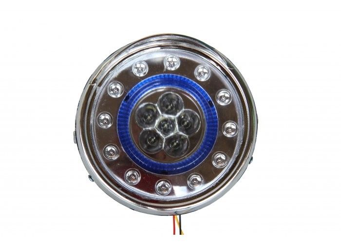 Фара с 6-ю экономичными яркими светодиодами предназначена для установки на электроскутеры, электромотоциклы и другой лёгкий электротранспорт, имеющий аккумуляторы любого типа с напряжением 36, 48 или 60 вольт.
